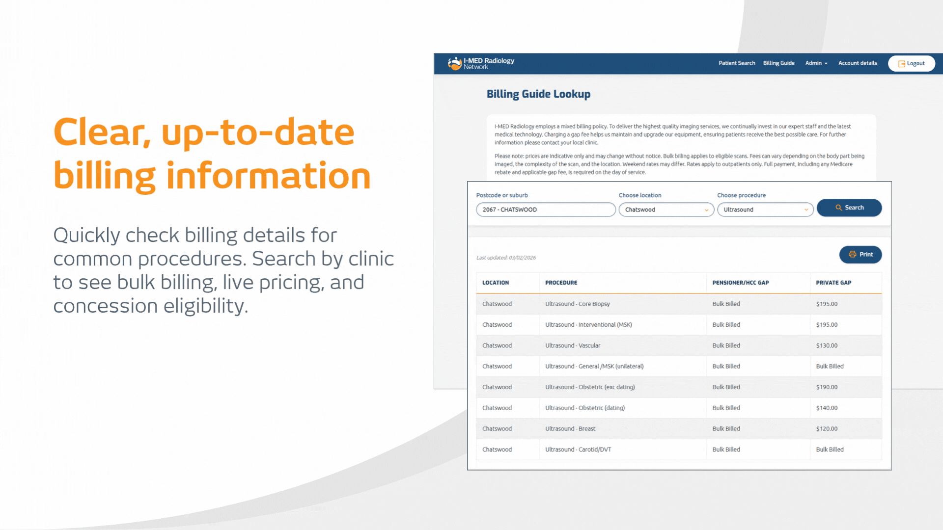 We listen to our referrers and update I-MED Online based on your feedback. From our latest online billing guides to easy referral pad restocking, we’re constantly refining our tools to better support your practice